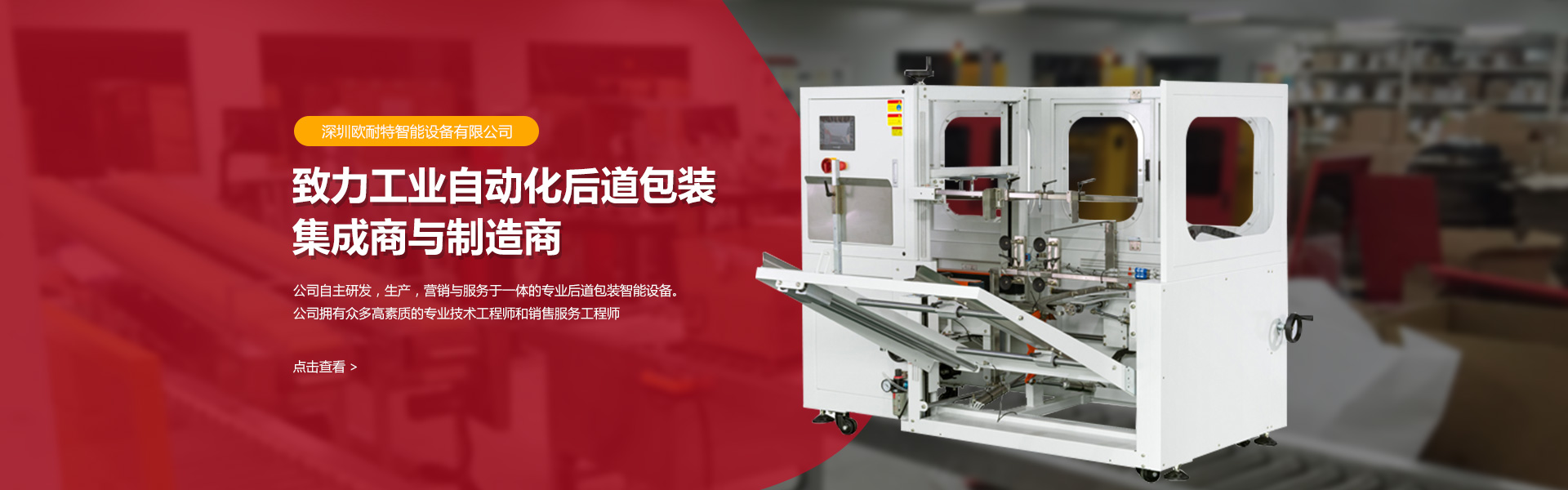 深圳歐耐特智能設備有限公司,坐落于中國首個經濟特區深圳。是一家致力工業自動化后道包裝集成商與制造商;,公司自主研發,生產,營銷與服務于一體的專業后道包裝智能設備。公司擁有眾多高素質的專業技術工程師和銷售服務工程師。基于成為自動化行業專家、引導和促進行業發展的理念,公司為客戶提供高質量的自動化產品和高效的解決方案。歡迎您的咨詢!公司多年來本著“一心一意、專注、專業、共贏”共同發展,共存共榮。的管理方針,我們渴望滿足客戶的需求,節約客戶人工成本為中心,提高自動化產品的知識培訓和技術支持服務,與客戶建立良好的合作關系,創造一條值得信賴、雙贏的發展道路。公司主營產品有:紙箱自動開箱、裝箱、封箱,紙箱自動套袋、紙盒折盒、自動包膜機,熱收縮包裝機、電商快遞袋打包機等。產品適用于醫藥、食品、日用品、化工、農化、日化、潤滑油、玩具、紙巾、化妝品、電子行業等。產品遠銷歐美、中東、東南亞等國家和地區。